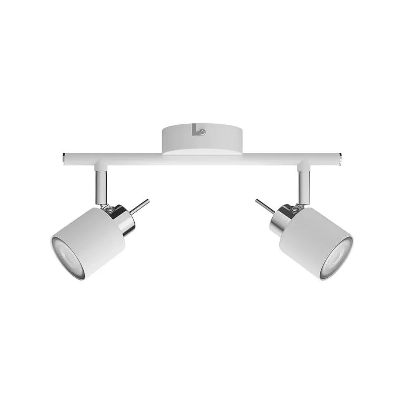 Foco sobrepuesto Philips Spot Meranti doble dirigible. Ideal para ser instalado en interiores como living, comedores, dormitorios, etc. No incluye ampolletas, su base es para dos GU10. Disponible en color níquel, blanco y negro. Mide 27,5 largo x 8 diámetro x 15,5 cm de alto.