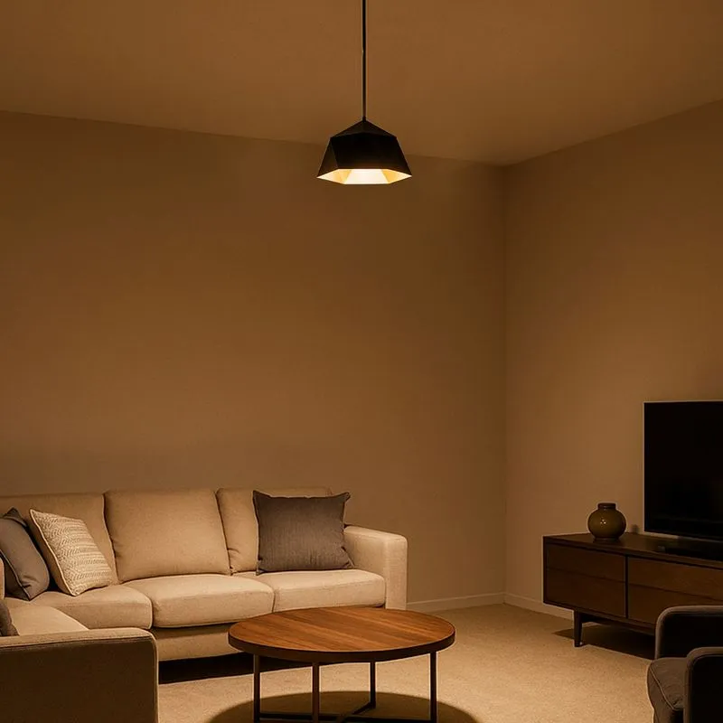 Con un diseño geométrico moderno, la pantalla LED Studio Véneto combina un exterior negro elegante con un interior dorado que potencia una iluminación cálida y sofisticada. Fabricada en hierro, mide 38 cm de diámetro y 21 cm de alto, ideal para espacios interiores o bajo alero. No incluye ampolleta E27.