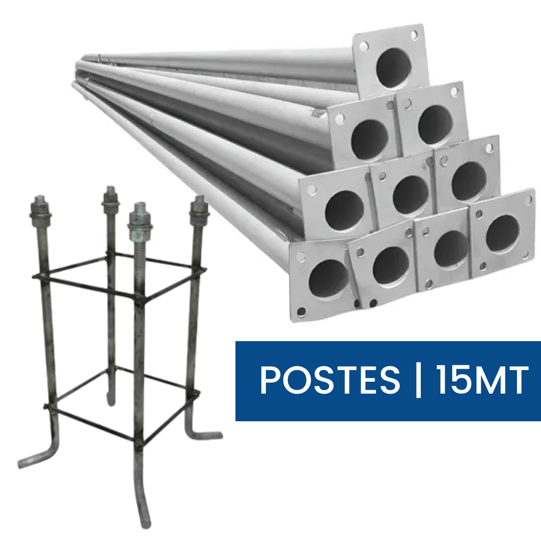 Poste cónico de acero galvanizado de alta resistencia, ideal para proyectos de alumbrado público de gran envergadura, áreas deportivas, autopistas y zonas industriales. Su diseño estructural garantiza máxima estabilidad y su tratamiento anticorrosivo proporciona una extensa vida útil con mínimo mantenimiento.